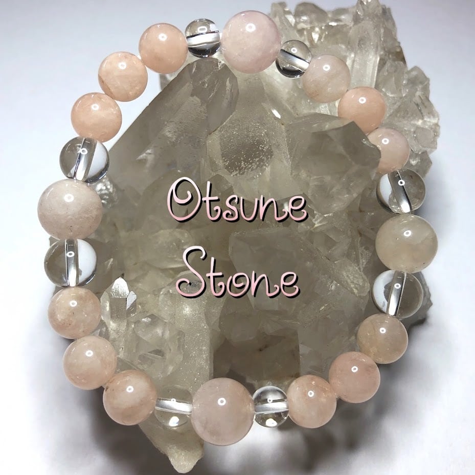 人気のモルガナイトと水晶を合わせた美しいブレスレットです。薄ピンクのモルガナイトは愛の石とも呼ばれ、身に着けた人に愛や癒しをあたえてくれます。わりと細身の男性も着けられるサイズです。もちろんゆったり着けたい女性にも最適です。
