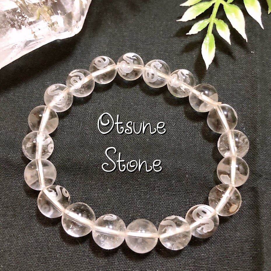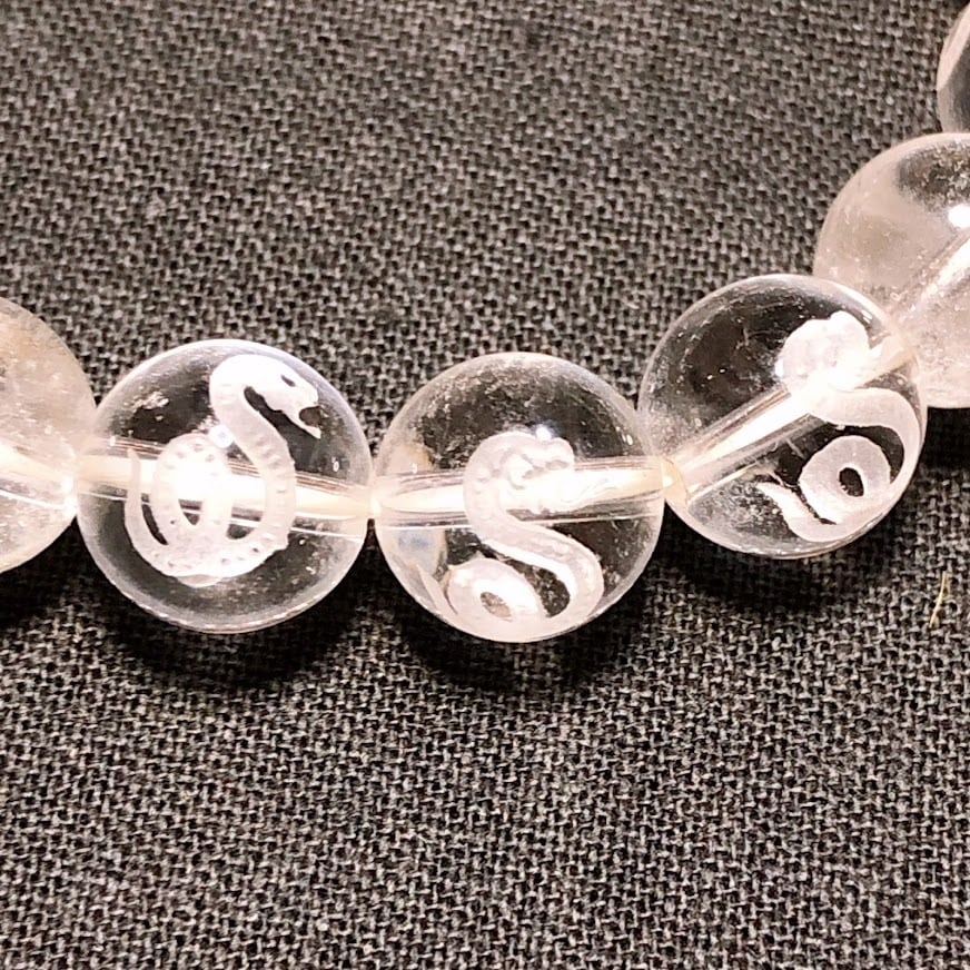 全ての玉に蛇の模様が入った10mmの天然水晶ブレスレットを、1点限定でお届けします。